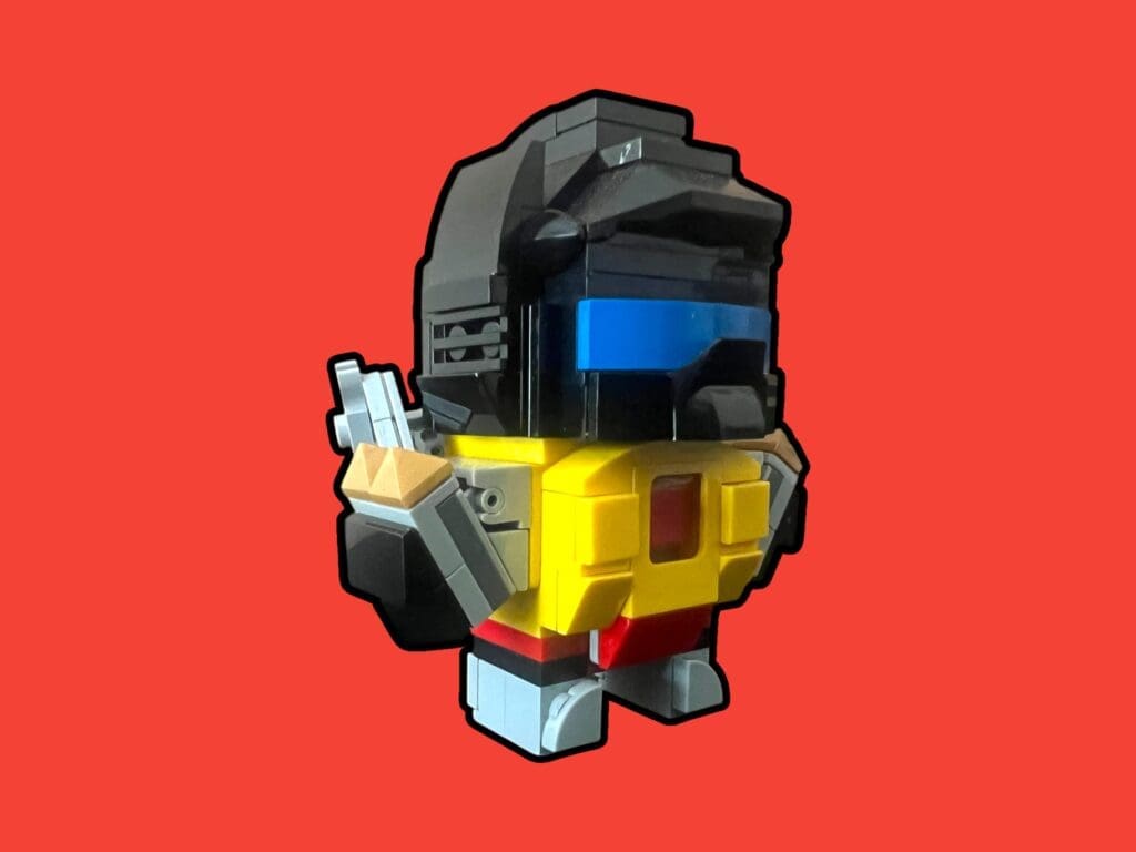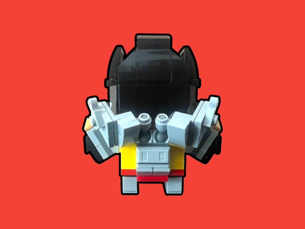 - Helmet & Crest – The layered slope pieces create his iconic head crest, instantly recognizable to Transformers enthusiasts. It’s a subtle but crucial detail that sells the character.