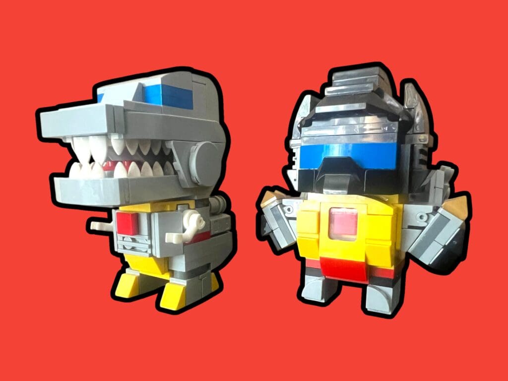 LEGO BrickHeadz Grimlock delivers on two fronts: nostalgia and creativity. I tried to distill the essence of the G1 Dinobot leader into both his modes him being my favourite, all while keeping within the playful chibi aesthetic of BrickHeadz.