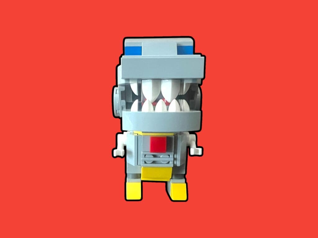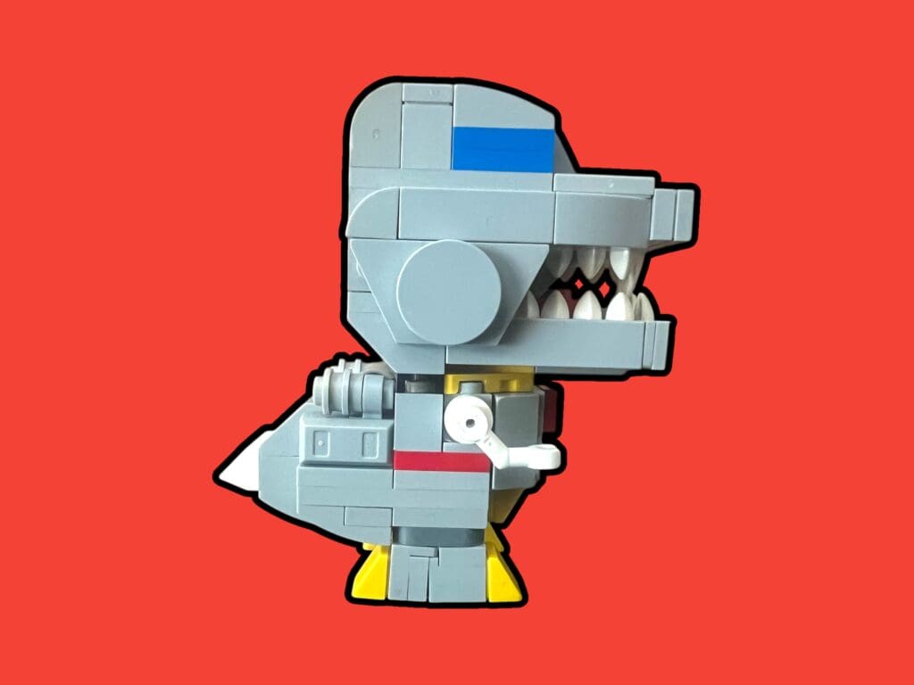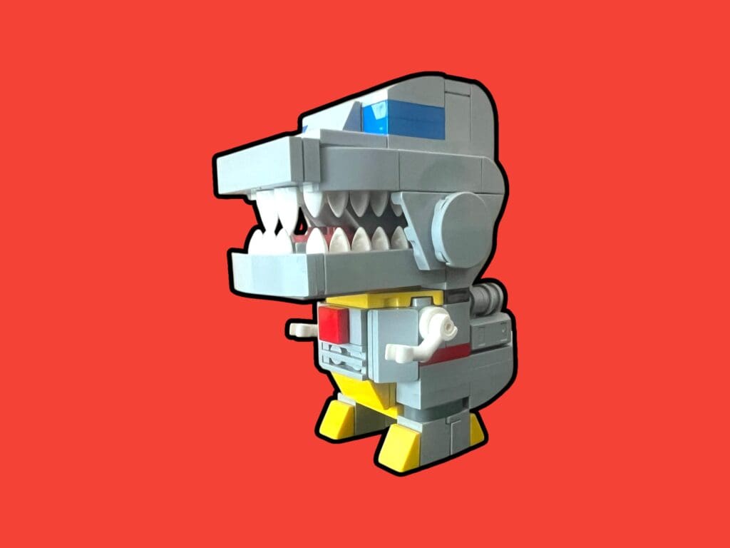 - Jaw & Teeth – The standout feature is undoubtedly the oversized mouth lined with sharp white teeth. The builder made smart use of sloped white tiles to create that jagged grin, giving Grimlock his trademark ferocity even in chibi form.